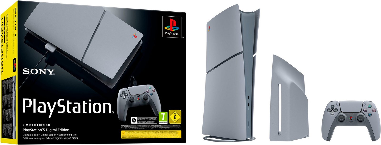 Feier das 30-jährige Jubiläum der originalen PlayStation®-Konsole mit dem PS5® Digital-Edition – 30th Anniversary Limited Edition Bundle. Dieses Bundle enthält eine besondere Version der PS5 Digital-Edition und tolles Zubehör mit Retro-Designelementen und dem ikonischen Farbschema, das eine Hommage an die legendäre originale PlayStation-Konsole, die am 3. Dezember 1994 veröffentlicht wurde, darstellt.